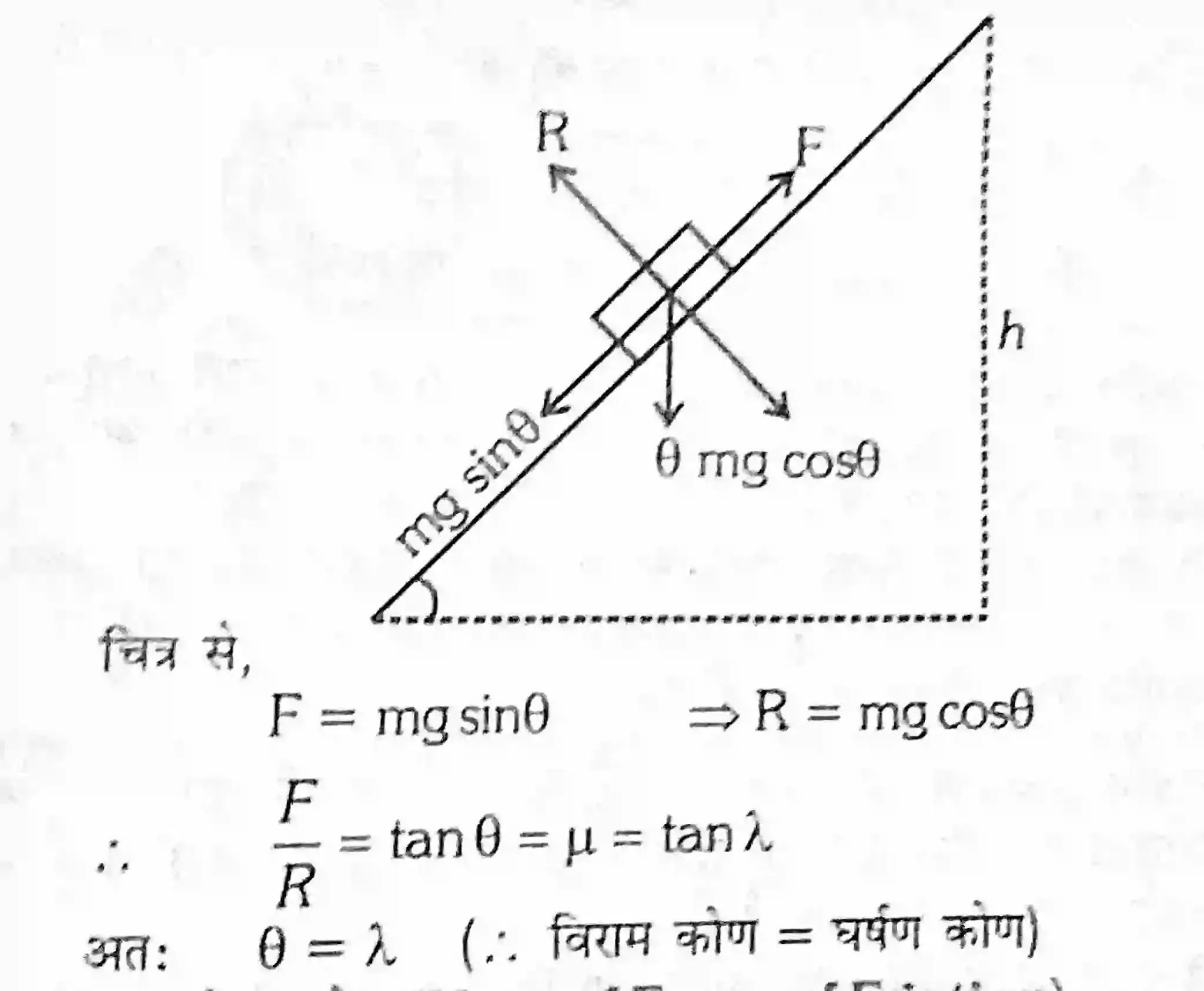 λ का मान सदा 45° से कम होता है μ (घर्षण गुणांक) एक विमाहीन राशि है तथा इसका मान 0 से 1 के बीच होता है।