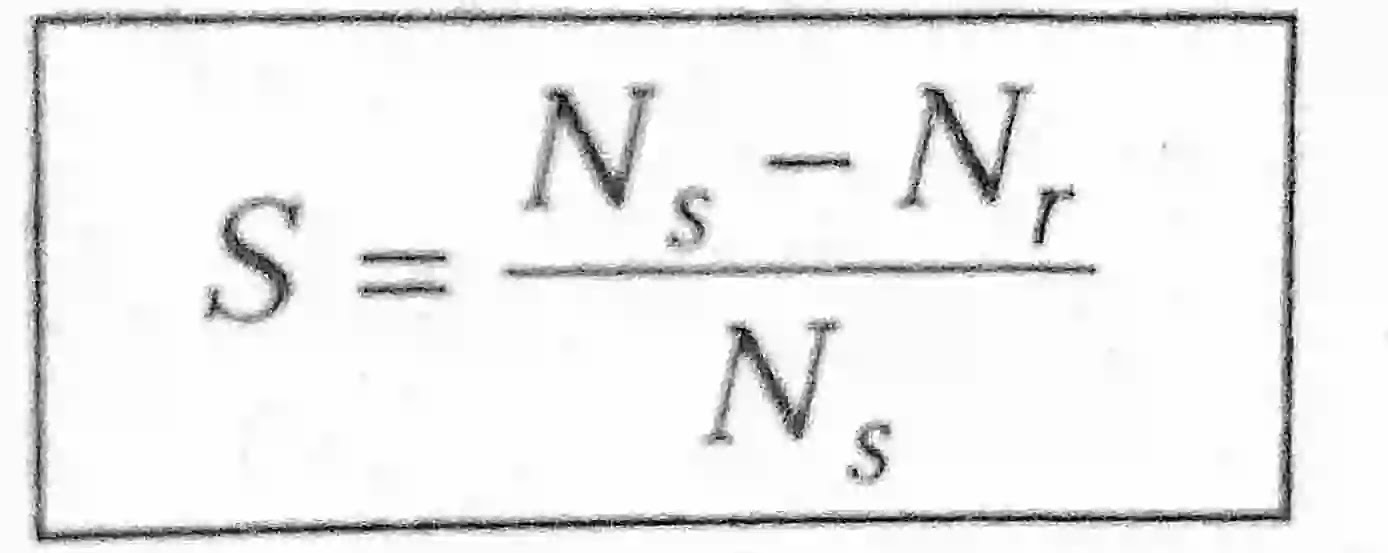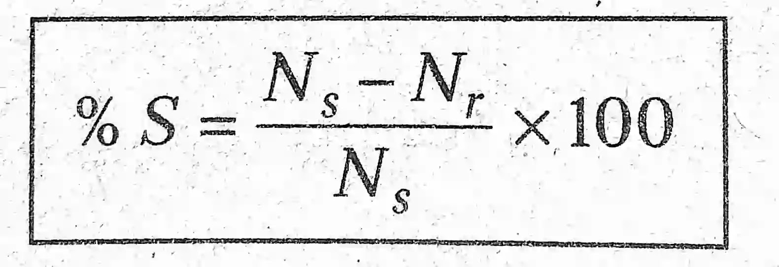 Ns , = तुल्यकालिक गति , R.P.M. में तथा Nr , = रोटर गति , R.P.M. में ।